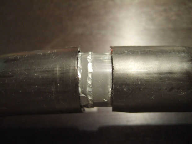 Al hacer el aro, hay una modificación que debe hacerse a la versión JasonUnbound: archivo/corte los bordes de un lado del conector del tubo. Corte la mayoría de los bordes como se muestra en la foto le permitirá desmontar el tubo cuando se necesita reemplazar las baterías, pero conservan el tubo juntos mientras que hooping.