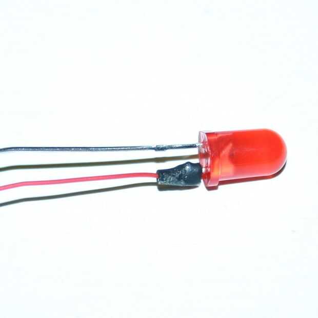 Envoltura de alambre de lugar en el ánodo (y final) del LED.  Colocarlo lo más cerca posible del cuerpo.  Cortar todo el plomo que no está siendo utilizado por el alambre envuelto.  Lugar calor tubería de encogimiento sobre la conexión envuelta y el tubo de calor.