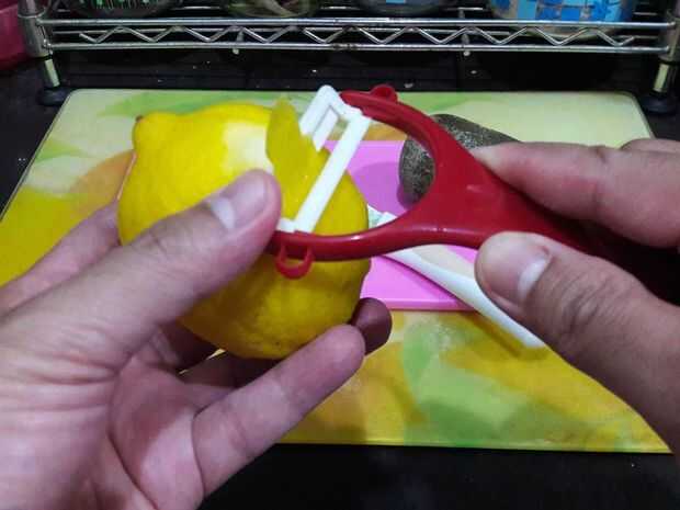 En primer lugar, pela el limón hasta que tenga unas tiras de piel de limón.