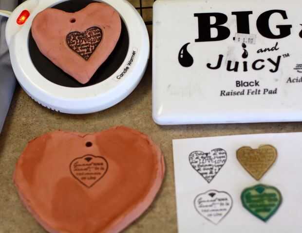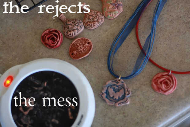 Tenía curiosidad sobre cómo absorbente la arcilla seca es si pongo pintura acrílica mate en él. He probado algunos diversos colores como ves en la parte superior de la foto, no como nada hasta que hice un lavado y algunos de los colgantes golpeó la parte superior con papel de lija fino. Tipo de odiaba hacer eso, ya que esta arcilla es excepcional para la celebración de detalle. Una vez que el colgante es húmedo nuevamente obtiene slick, y después de colocarle la vela caliente, pega esta vez. También he notado que hay una tendencia a desarrollar manchas poco más ligeros en color; no era lo suficiente para molestarme aunque. Después de secar y fijar para cinta, cordón, he probado la gota de aceite. Al igual que los que no hay color, el aceite hace un poco más oscuro que el colgante, pero rápidamente absorbe el aceite y no molestar en absoluto la pintura acrílica. Otra opción es utilizar otro sello y sello almohadilla y tinta de la parte posteriora de un pedazo grande. Cuanto más grande la pieza, parece el más propenso a grietas, ves donde añadir más arcilla y trapeó con agua para fusionar las dos arcillas. Funciona muy bien! Lijar los bordes después de que seque. Así que si te gusta algún color, o si eres un purista y prefieren el color natural de la arcilla, disfruta la experiencia!