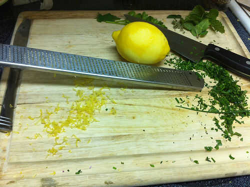 No utiliza a una zester cítricos regular para esto; un fino microplane hace pequeños suficiente virutas de la cáscara que la textura no será apagado poner.
