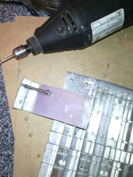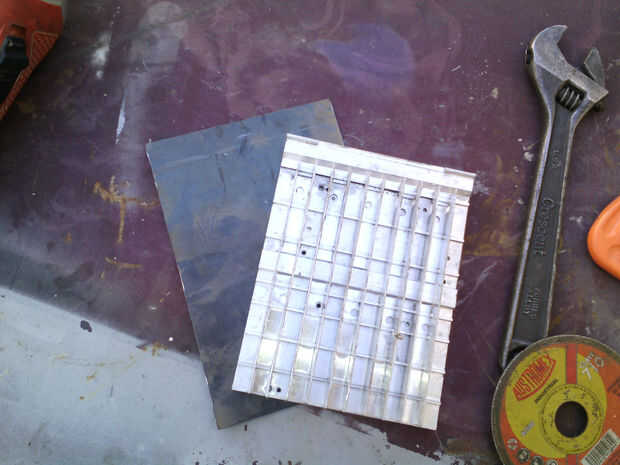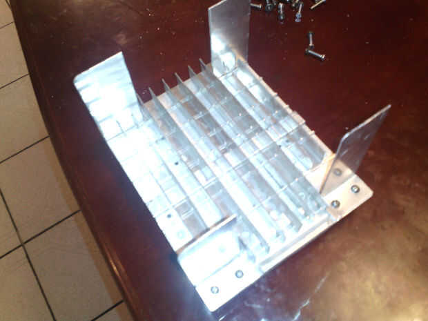 Tomando las medidas de largo de nuestras 9 celdas peltrier (4mmx4mm) cortaremos el disipador y la placa de aluminio nos dara 12cm x14cm (tornillos de dejamos 2 centimetros para los)