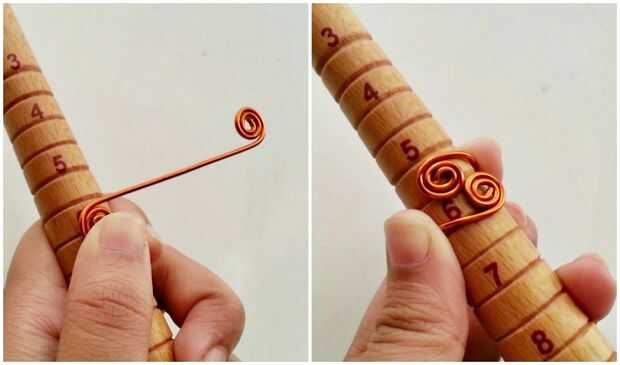 Ahora, simplemente Envuelva la parte recta del alambre alrededor de un mandril o un objeto redondo con los remolinos hacia uno al otro. Se puede ajustar fácilmente el tamaño del anillo.