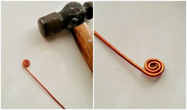 También puede martillo la pieza de alambre swirly antes de hacer el anillo.