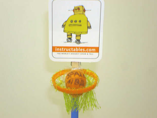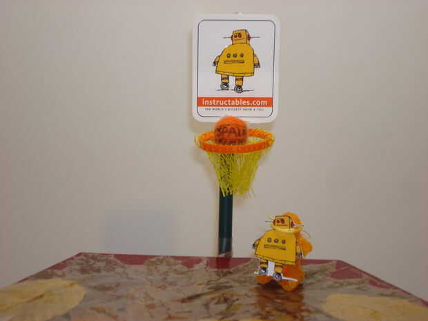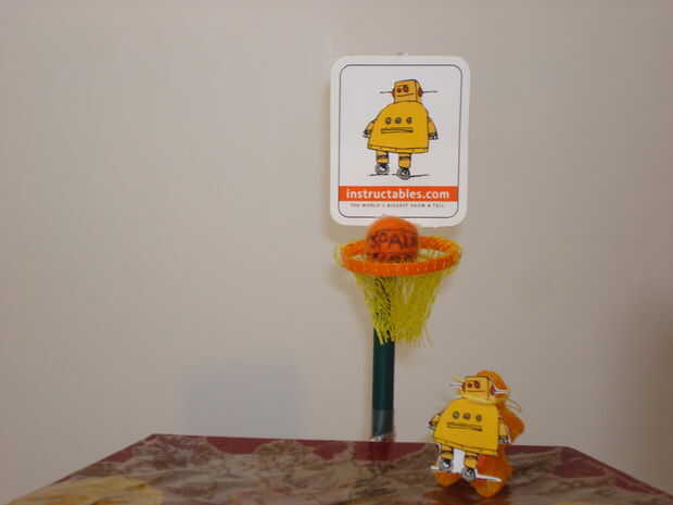 Bueno esto es lo que usted necesita un contador Base, poste y sostenedor de la muestra, una meta de baloncesto de nerf, y zip lazos bien esto es lo que hacesPaso 1 tomar el polo y entierro el polo de tierra hasta que haya cubierto la PlazaPaso 2 tome