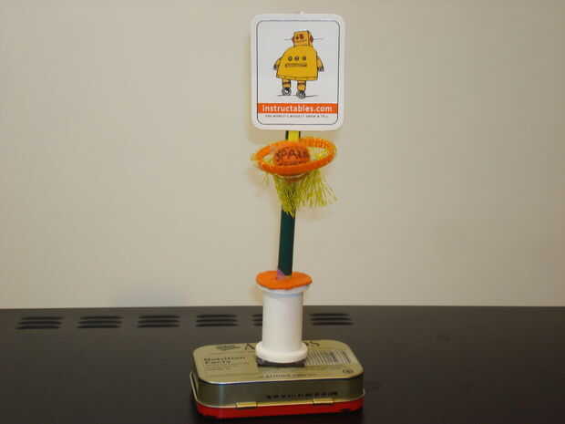 Bueno esto es lo que usted necesita un contador Base, poste y sostenedor de la muestra, una meta de baloncesto de nerf, y zip lazos bien esto es lo que hacesPaso 1 tomar el polo y entierro el polo de tierra hasta que haya cubierto la PlazaPaso 2 tome