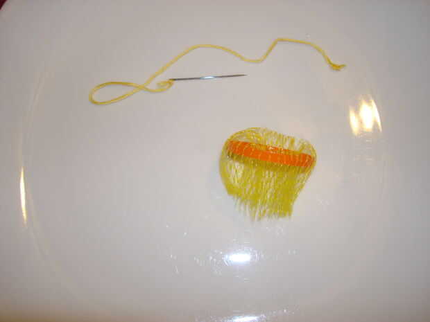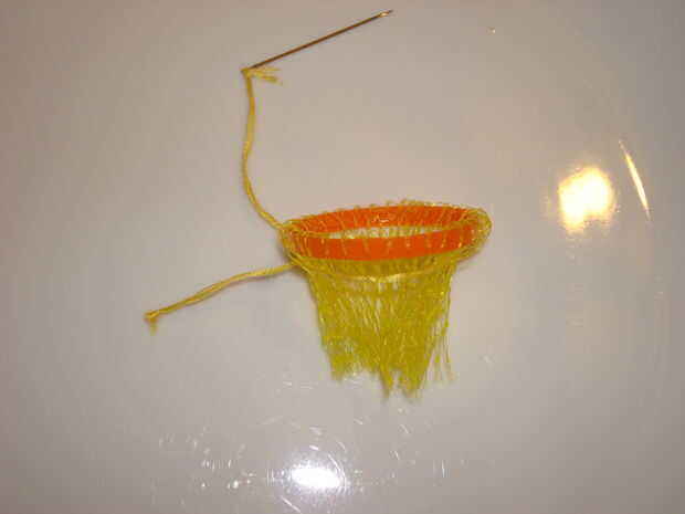 • Tejido de la aguja a través de la red apenas debajo del borde.