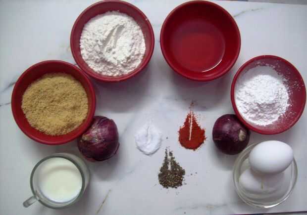 esto es 100% comida de puro ataque al corazón en su mejor momentoPaso 1: Lo que se necesita 1 cebolla grandemontón de bacon (yo usé tocino de pavo)3 tazas de migas de pan (o pan tostado si tienes un procesador de alimentos.)3/4 taza de harina1/3 taza