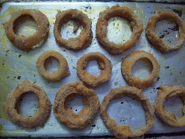 3. Coloque los anillos de cebolla en la bandeja de la hornada.