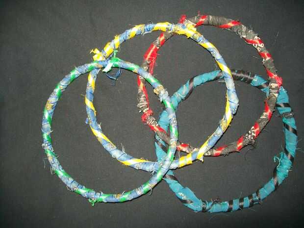 Estos son malabares anillos que hice el año pasado cuando decidió enseñarle a hacer malabares pero luego no pudo encontrar cualquier plástico 'real', haciendo malabares anillos en mis tiendas locales.