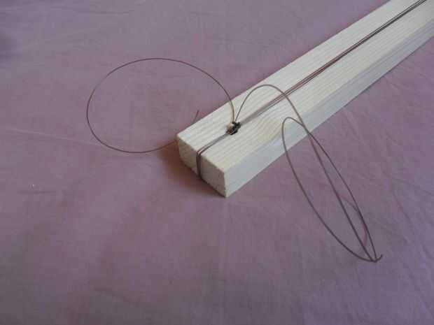 Hacer lo mismo con la otra mitad de la cuerda, correr a lo largo y nudo, luego ejecutarlo de nuevo y lo (asegurándose de que no esté) nudo. Ahora debe tener cuatro longitudes de cadena asegurada – todos en el mismo lado de la pieza larga de madera. Hacer todo extra seguro haga un nudo con los dos extremos cortos que te queda.