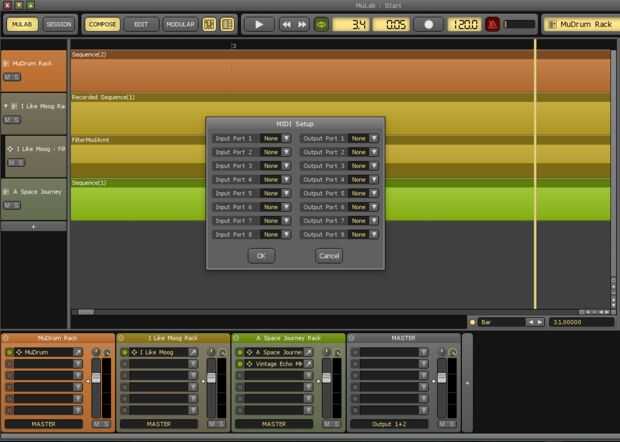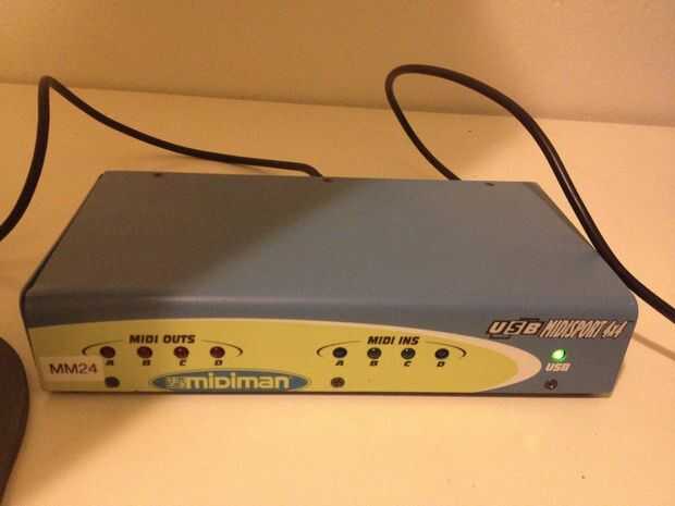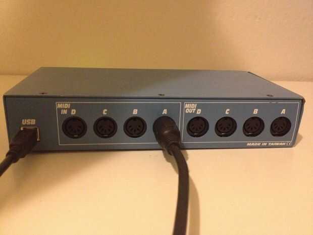Después de montar el circuito de Arduino, necesitará ser capaz de enviar comandos de MIDI con el ordenador portátil. Para ello he utilizado una interfaz MIDIsport 4 x 4 (simplemente porque tengo gratis). Cable MIDI funciona desde el conector MIDI (paso 5) al puerto A de MIDIsport y de allí a la laptop que ejecuta el software MuLab .