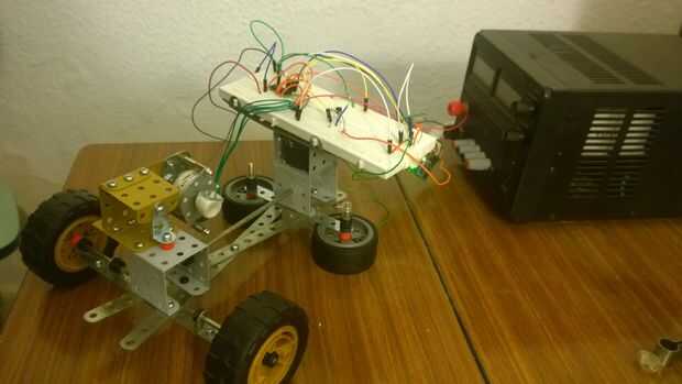 El siguiente paso es importante. Deberás hacer una estructura capaz de sostener el sistema, particularmente el láser y el motor, ya que tienen que estar perfectamente alineadas. Como se dijo antes, hacíamos mecano la estructura. Los neumáticos reducir el efecto de las vibraciones del motor y da el arpa un estilo buscando coche. ¿Cool, derecho?