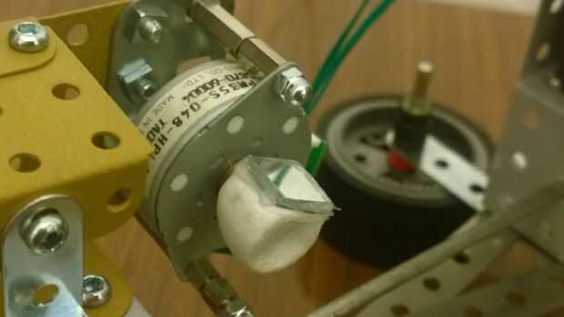 Usted tendrá que colocar el espejo para el motor. Utilizamos el fimo para hacer una pieza que encajaría en el engranaje y el caliente-derriten el pegamento para pegar el espejo a dicha pieza.