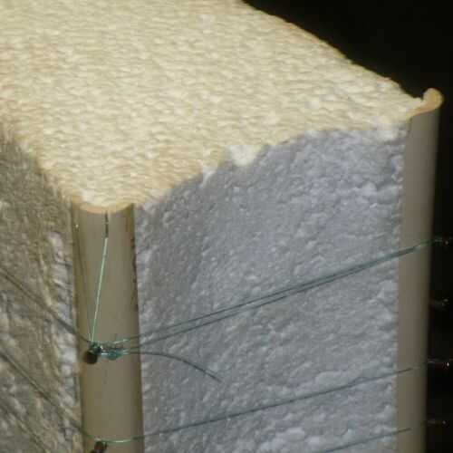 Usé dos ranuras en los extremos de los protectores de la esquina comenzar y terminar la línea de la bobina. Las ranuras ayudan a mantener la tensión de línea mientras que había atado de los nudos.