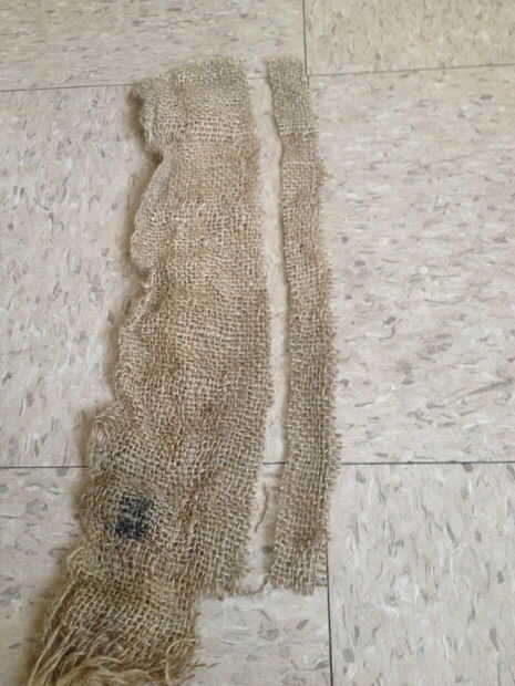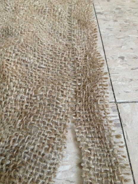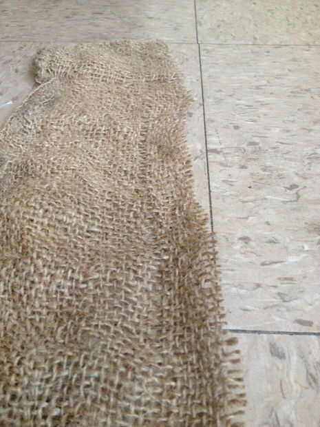 Para cortar la arpillera, escurrir una cadena a lo largo de la línea donde desea cortar. Esto le da un espacio para seguir y un corte uniforme. Mi resultado final no parece que recto porque yo no plancha bien y era todo arrugado. buttttt que es como lo hice.