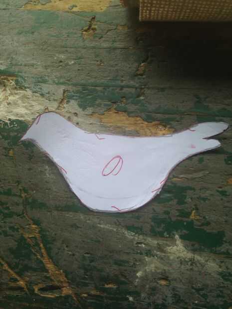 Haz tu papel y lápiz y dibujar la forma del cuerpo de un pájaro bonito. O puede ser perezoso como yo y traza uno de Internet. De cualquier manera, hacer un patrón con un trozo de papel. Tomar el patrón y ponerlo en el lado saltaría de la arpillera. Traza una birdy. Ahora dé vuelta el patrón y trazar otro birdy. Tienes que darle la vuelta para que al coser los dos juntos, no se ve arpillera. Cortar dos birdies, aplique unas gotas de pegamento caliente en uno de los laterales de plástico de pájaro y aplastar a los dos juntos. Esto es sólo para facilitar la cosa, tan sólo una o dos gotas es necesario. En este punto usted podría darse cuenta que las dos mitades no son exactamente idénticas, y no coinciden perfectamente. No se preocupe, sólo recorte el exceso. ¡ Hurra! Ahora tienes un cuerpo de pájaro hermoso de la arpillera. Aliteración es divertido.