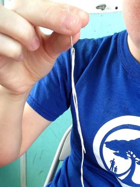 Agarrar el hilo de aguja y bordado y sentarse por un sólido 7-14 minutos de trabajo. Seda del bordado viene agrupada en una gran cadena, pero si se separan los destaca, tiene seis filamentos más pequeños filiforme. Para ello, utilizo tres de los filamentos. Así que agarra suficiente hilo para circundar el perímetro de su pájaro y atar nudos. Pase todos los tres filamentos en su aguja a la vez. Sin embargo, no doble el hilo como lo hace con la costura. Un nudo en un extremo de la 3strand y tirar el otro extremo a través de los ojos o la aguja. Tire la aguja aproximadamente tres pulgadas más allá del final del final unknotted y pliegue los hilos lo mejor pueda para que la aguja se queda donde está mientras se cose. Si usted es todavía confuso, mira la foto. Si todavía no entiendes, ver cómo enhebrar una aguja para el bordado.