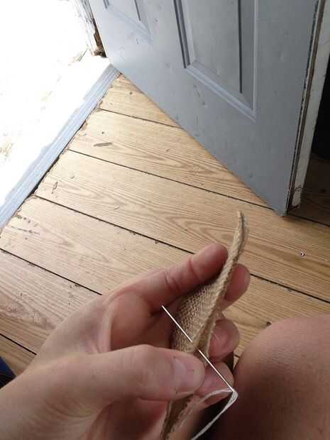 Para la puntada, vas a utilizar un punto de funcionamiento. Esta es la puntada de costura más básica que todos aprendieron como niños. Es donde poner la aguja en un lado, tirar de él y ponerlo en el otro lado. Si se confunden por mis fotos puede buscar un tutorial más completo sobre la puntada corriente. Cosidas en los bordes y trató de mantener la misma distancia de los bordes tanto como he podido con cada nueva puntada. Empecé a coser con poner para arriba a través de la parte posterior de una de las aves por lo que escondía el nudo en el hilo. Continuar cosiendo todo el perímetro y acabar lo que empezaste, pasando por sólo uno de los lados, haga un nudo por lo que permanece oculto en el interior.