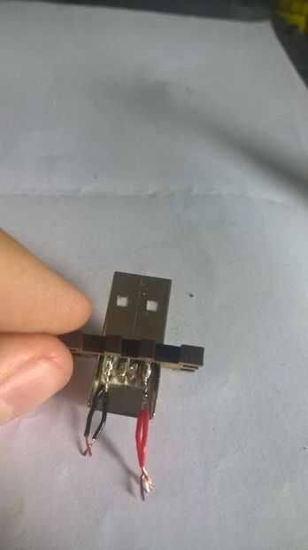 En la parte de usb, soldar 2 cables pequeños a cada tierra y + 5V. Debería haber sido 3 alambres a la tierra.