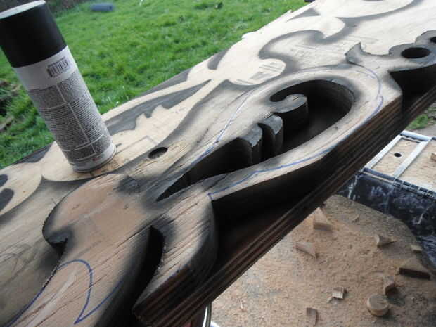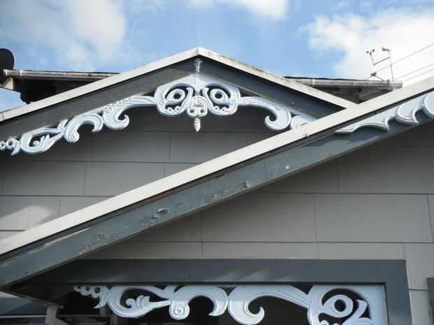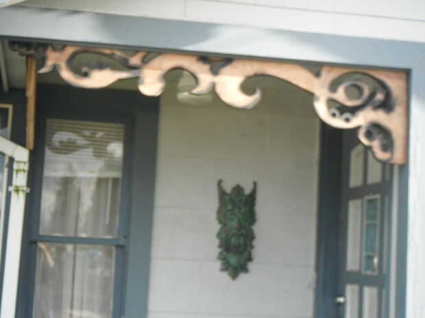 primero yo busqué en Google algunas fotos de pan de jengibre arquitectónica por lo que pude obtener una idea aproximada de lo que quiero. Con un rotulador sacó mi diseño en planchas de madera extra gruesa chatarra. Luego perforé algunos agujeros para facilitar el corte con una sierra de calar/vaivén. Para asegurarse de que mis patrones correctamente fueron repetidos e invertidas, solo coloca la primera pieza cortada en la siguiente sección de la madera contrachapada y entonces se utiliza para capturar o transferir la forma de la aerosol-pintura. Luego llené los agujeros que encontrarás en los bordes de corte madera con masilla de pintor. y utilizar la masilla para añadir diseños texturizados en la cara de los rollos. Después de unos días para secar la masilla pintado con alguna pintura de casa exterior rescatado como una cartilla. (este azul del tiempo). Se pintar toda la casa una vez que decido que estoy acabado decorando encima...