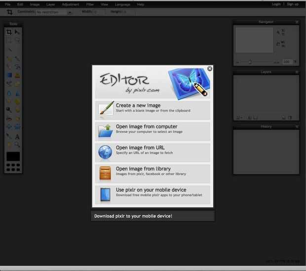 Pixlr.com es esencialmente una versión libre, en línea, de Adobe Photoshop.
