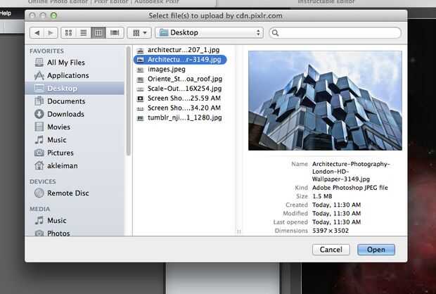 Empezar por crear un nuevo archivo, lo más fácil para empezar con una imagen en lugar de un lienzo en blanco, así que abrir una imagen desde tu ordenador. Seleccione una de las imágenes ha recoger.