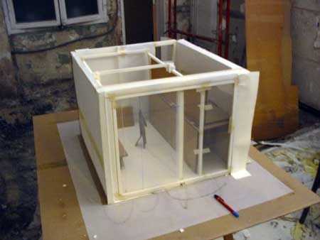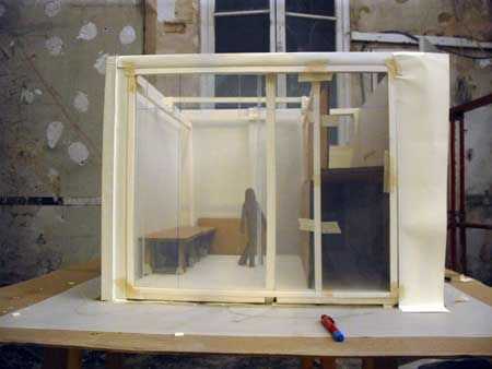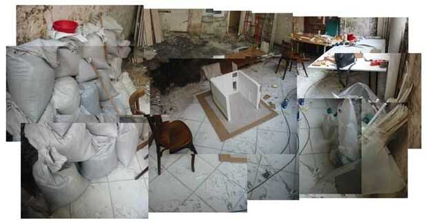 Mi deseo era hacerlo como una fábrica: permitiría a un puente móvil para mover objecs masiva en este pequeño espacio. La naturaleza de la planta (por encima de las cuevas) reveló que este proyecto era imposible + la presencia de una máquina industrial (costy así) le ba un problema si este espacio tuvieron que ser alquilados en el futuro.