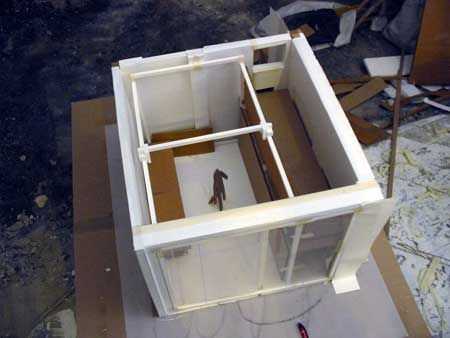 Yo inmediatamente vi que necesito un piso para tener un espacio "limpio", como muchos de mis actividades son polvorientas o ruidosos. Así que la Galería era una buena solución, posible con techo de 4m de altura pero sólo es posible con una estructura metálica delgada y fuerte.