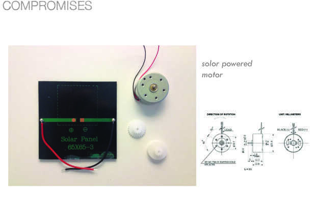 La idea de utilizar esta tecnología en una escala de construcción significa que quería alejarse de usar Arduino o algo similar porque el objetivo final es ser sensible de un modo que reduce el uso de la energía. Este motor solar requiere mucho menos voltaje que un motor normal por lo que parece más práctico para esta aplicación.