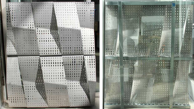 Este proyecto es el producto de un estudio de diseño de arquitectura impartido por Adam Marcus (Proyectos Variable) y Margaret Ikeda y Evan Jones (Asamblea) en la Universidad de California de la División de arquitectura de la artes en la primavera de 2014. El estudio, titulado "Arquitectura en el hacer," exploraron oportunidades pragmáticos para aprovechar las tecnologías de fabricación digital en el diseño y construcción de fachadas altamente performativa. En el desarrollo de propuestas para un nuevo edificio para la escuela del reino en Berkeley, California, el studio ha colaborado con el Autodesk / Instructables muelle 9 taller en San Francisco para producir una serie de gran escala construcción de prototipos de la envolvente. Fabricado en acero calibre 18, estos prototipos permitieron a los estudiantes para trabajar en escala 1:1 y para desarrollar una comprensión integral del funcionamiento, detalle y montaje. (Vea este enlace para obtener más información en el estudio).