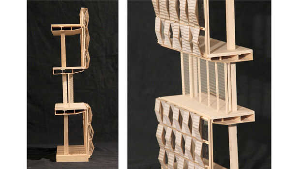 El edificio sistema de sobres es una pantalla perforada de acero personalizada que modula la luz, sombra y privacidad según los programas interiores y su exposición solar y de la calle. La densidad y el tamaño de las perforaciones cambian localmente según los requisitos programáticos, y el patrón global es impulsado por un gráfico de agua que se inspira en se centra el proyecto.