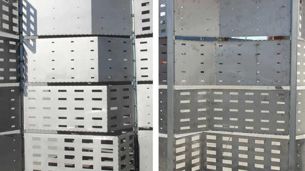 Este proyecto es el producto de un estudio de diseño de arquitectura impartido por Adam Marcus (Proyectos Variable) y Margaret Ikeda y Evan Jones (Asamblea) en la Universidad de California de la División de arquitectura de la artes en la primavera de 2014. El estudio, titulado "Arquitectura en el hacer," exploraron oportunidades pragmáticos para aprovechar las tecnologías de fabricación digital en el diseño y construcción de fachadas altamente performativa. En el desarrollo de propuestas para un nuevo edificio para la escuela del reino en Berkeley, California, el studio ha colaborado con el Autodesk / Instructables muelle 9 taller en San Francisco para producir una serie de gran escala construcción de prototipos de la envolvente. Fabricado en acero calibre 18, estos prototipos permitieron a los estudiantes para trabajar en escala 1:1 y para desarrollar una comprensión integral del funcionamiento, detalle y montaje. (Vea este enlace para obtener más información en el estudio).