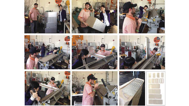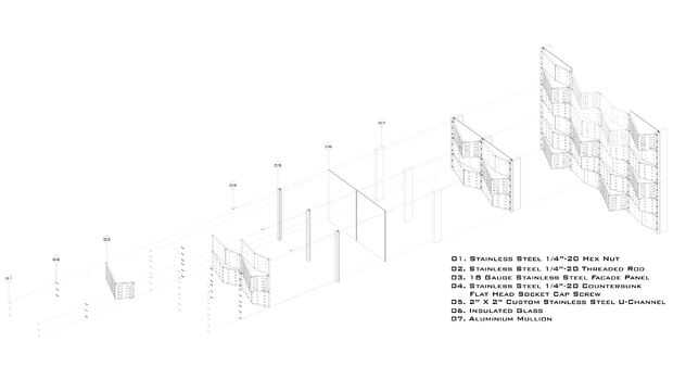 Los prototipos se reunieron en la tienda de CCA. Las curvas de los paneles se hicieron con una rotura de la prensa. Unistrut de acero estándar estructura fue utilizada para estructura de copia de seguridad. Las bridas incorporan una técnica de fijación simple en el que dos paneles adyacentes se unen mediante un solo tornillo, ocultando así las tuercas de fijación a lo largo de la parte posterior de los paneles.