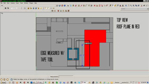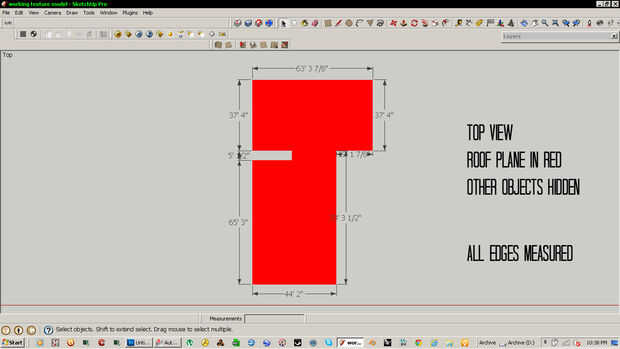 Estas imágenes muestran cómo uno de los planos de techo había medido. Tiene muchas caras y bordes y pensé que sería un buen ejemplo. Es necesario encontrar las longitudes exactas de cada borde. Esta manera, el modelo físico se verá exactamente igual que el modelo 3D y todas las piezas se coinciden.