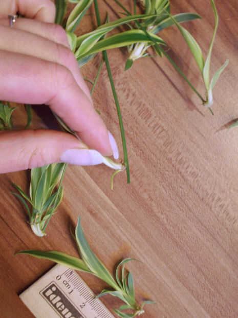 Retire las plántulas de los tallos. Solo tire un poco y saldrá fácil.