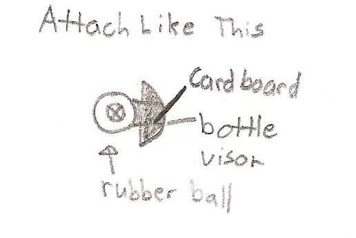 Por último, como se muestra en la figura 4, coloque la visera de la botella a la bola de goma con cartón pintado amarillo. Y el pegamento caliente.