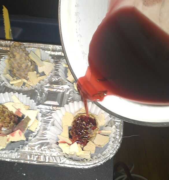 Luego llene el medio iniciador de fuego con cera caliente (tenga muy cuidado!).