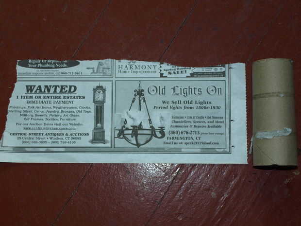 Primero se rasgan el periódico por la mitad (en el pliegue) con aproximadamente 12" de ancho. (Foto 1)