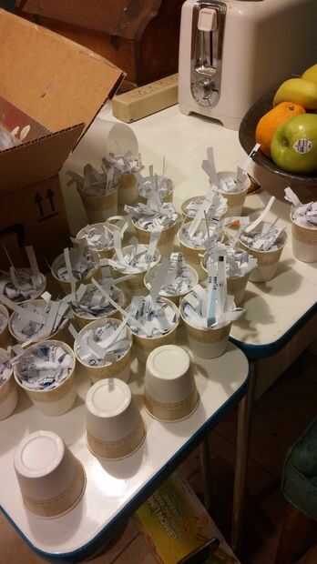 Los niños pueden entrar en esto, también. Sólo configura el documento relleno operación bien lejos de la estufa. Esta parte es muy fácil. Papel material en suficiente tazas para cubrir el fondo de su caja de cartón forradas. Usted a verter cera en ellos aquí y conseguir una gran sobre los bordes de las copas, así que asegúrese de que su lámina cubre completamente el fondo y los lados de la caja.