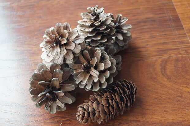 Recoger piñas y déjelas secar hasta que se abran completamente. Si piñas son húmedos puede secar en un horno a 120 grados durante una hora quitar la humedad y abrir los pétalos. Observar cuidadosamente. Si compraste en la tienda puede ignorar este paso todo.