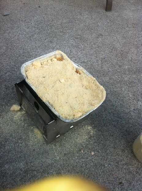 Calentar cera. Cuidado de no coger en el fuego. Hacer esto fuera por una razón.