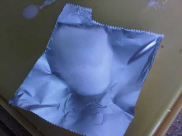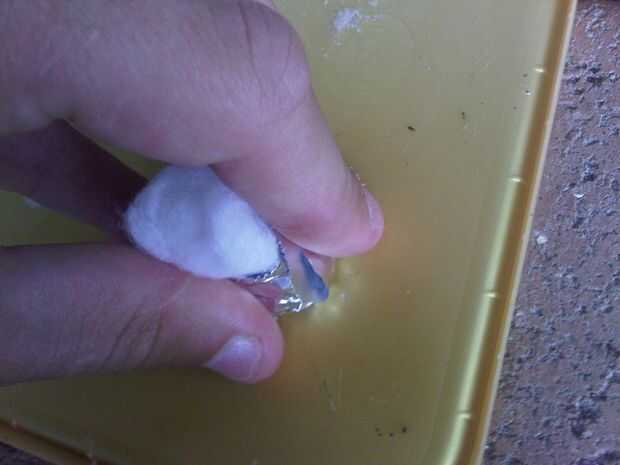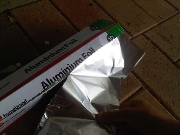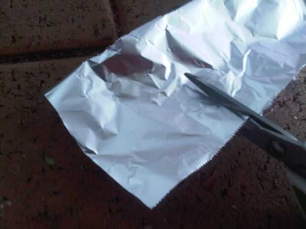 Una vez estén secas corta una pieza de 5 x 5 cm de hoja de lata y enróllelo alrededor de donde está la cera en la bola de algodón. Asegúrese de que el papel de aluminio no subir mucho más arriba entonces a medio camino encima de la bola de algodón.