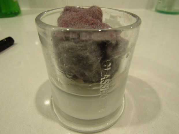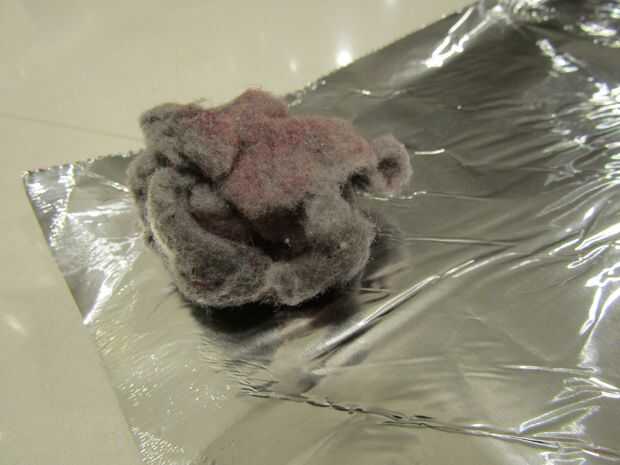 Hacer sobre una bola de diámetro los 5x5cm con su pelusa que han recogido. Tratar de meter en tanta pelusa como puedas. Luego sumergir la bola de pelusa en la cera de vela derretida y pegarlos en un papel de aluminio. Dejar por unos 5 minutos para enfriar y secar en papel de aluminio. La razón por la que decidí pegar en hoja de lata es porque puede pelar apagado fácilmente y pegarlo donde se desee.