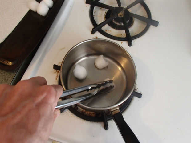 Tres de las bolas de algodón añadir a la sartén y, con las tenazas, absorber la jalea. Una vez que ha saturado, colóquelos en la bandeja para hornear se enfríe. Repetir para terminar.