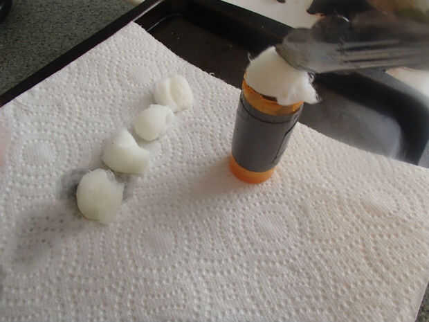 Estos chicos malos son grasa, por lo que querrá guardar en algo que les evitará fugas cuando el temps particularmente cálida. Yo uso una botella de píldora. Son impermeable, durable y libre. Sólo asegúrese de limpiarlos, primero. No saber qué efecto fuego puede tener sobre lo que estaba allí. Como veis, enrolle una longitud de cinta alrededor de ella. Enrolle un poco de cinta aislante alrededor de un par de cosas. A nunca se sabe...