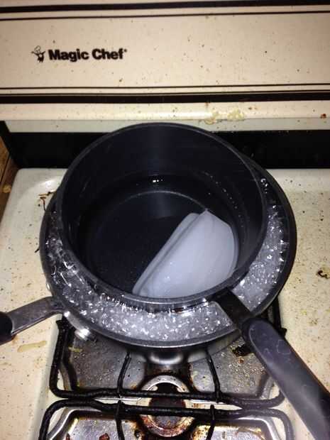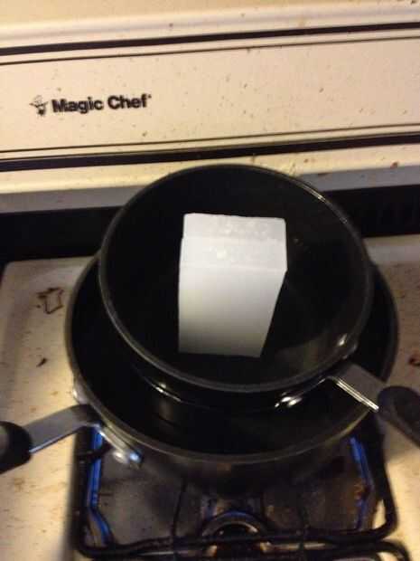 Siga las instrucciones en la caja para derretir la cera, o acabo de leer esto. JAJAJA con este tipo de cera puede llegar a ser inflamable si se calienta más.  Para evitar esto pones una olla en una olla con agua hirviendo. el agua no pasará por encima de la ebullición temperatura y ese calor se transfiere a la olla con la cera en ella. Sólo para su información.