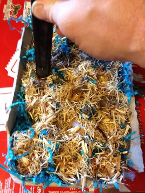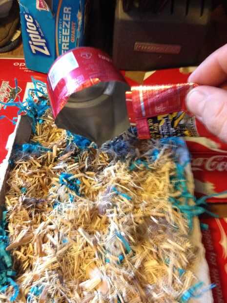 Utilizando el poder han hecho verter sobre un valor de cucharadas de cera en cada taza de la caja de cartón de huevo. Asegúrese de verter lentamente cubriendo todo en cada taza con la cera. Cuando se ha completado Presione en cada taza con el extremo romo de un mango de destornillador grande. Luego ponerlo en la nevera o el congelador durante unos 5 minutos. Tirar de nuevo hacia fuera y empujar sobre ella una vez más.  Luego deje que se enfríe completamente.
