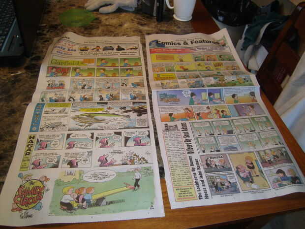Usos del periódico, respetuoso del medio ambiente; Reutilizar el periódico. Escoba Eco Friendly y cubo de basura ecológico de los periódicos.