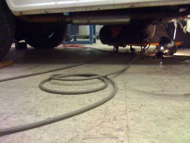 Gatear por debajo de la furgoneta. Si no hay suficiente espacio para que usted ajuste cómodo y trabajo se necesita poner para arriba en soportes de gato y muy bloquée. No meterse este punto ya que se se sacude la furgoneta muy seriamente para el motor suelto del busto. Mi camioneta es stock y bastante alta en las hojas de muelles y llantas de 14 pulgadas así que nos podríamos deslizar por debajo de como es.